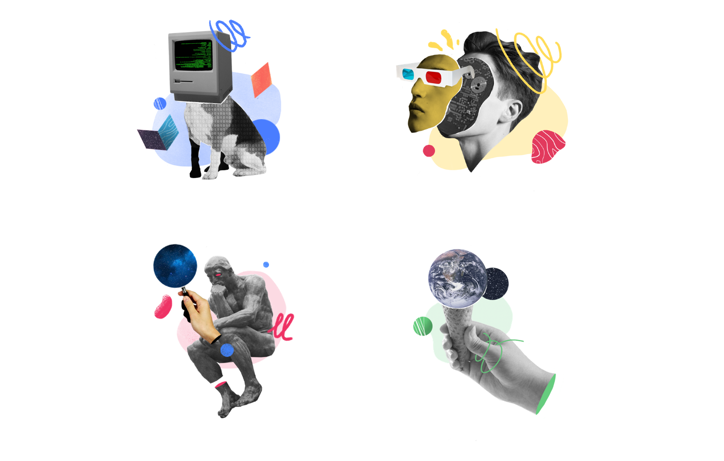 Illustration is a powerful communication tool, consequently we wanted an illustration style that helped our brand to distinguish itself. We built a style based on collages of real photos combined with organic elements and shapes in conjunction with both our palettes.